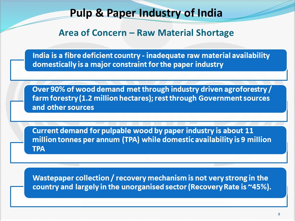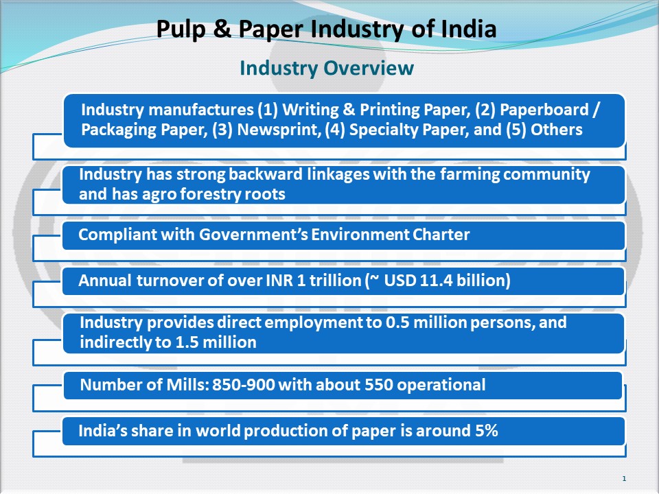 India’s Paper Industry accounts for about 5% of the world’s production of paper. The estimated